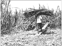 Later, toen de vrouwen en kinderen niet meer op het veld gingen werken bedachten ze een soort loopbrug naar de wagons. De contractarbeiders werken zes dagen in de week. |