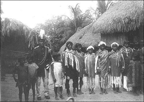 7. Kapitein Abraham van de Surinous met zijn familie. De kapitein is in uniform zoals hij op Koninginnedag zijn opwachting komt maken bij den gouverneur. Ze staan er allemaal in feestkleding bij.
