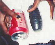 Vrouwen verstoppen de drugs soms op de vreemdste plaatsen. (Rechts de grootte)