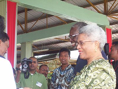 Daarvoor waren ook President Ronald Venetiaan en first lady Liesbeth Venetiaan-Vanenburg uitgenodigd, die vroeg al in de middag aankwamen in het cultureel centrum Sana Budaya.