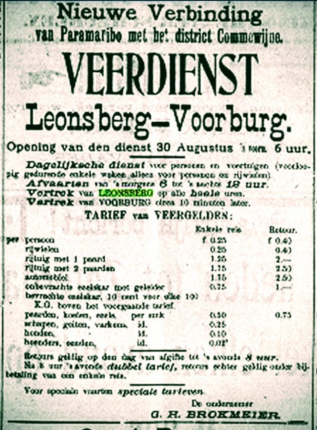 Wie rond 1900 vanuit Paramaribo de rivier over wilde steken naar het huidige Commewijne kon niet gebruikmaken van een geregelde veerdienst tussen twee plaatsen. Zo’n veerdienst was wel noodzakelijk, want vervoer over land, bijvoorbeeld tussen Paramaribo en plantages in Commewijne, was bijna niet mogelijk vanwege het ontbreken van een behoorlijk wegennet.