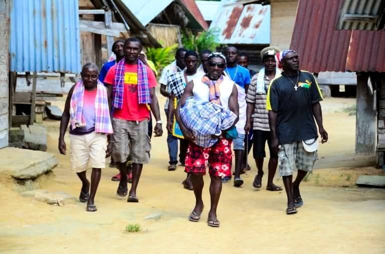 Op deze manier beelden de mannen het conflict uit wat er tussen de families is ontstaan. Ze hebben ruzie, en dat moet uitgevochten worden. Maar de delegatie uit Botopasi houdt zich aan zijn woord: er wordt geen enkel huis verwoest.