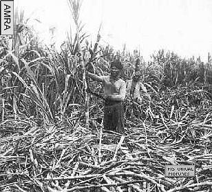 Rietkappen was zwaar werk.Toen de slavernij werd opgeheven, haalde men "contract" arbeiders. Hier een javaanse contract arbeider aan het werk.