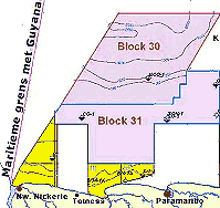 Olie in Blok 30 veelbelovend Bij goedkeuring door de Raad van Ministers zal de Staatsolie Maatschappij Suriname N.V. een samenwerking met de Maersk oil aangaan. Een topzware Staatsolie-delegatie onder leiding van Eddy Jharap hield deze week een exposé voor de ministerraad, aldus Vice-President Jules Ajodhia.