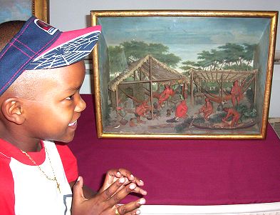 Een schilderij van de hand van Obentiye pseudoniem van Dennis Boodoe is een geschenk voor de Republiek. De governor van de Centrale Bank van Suriname, André Telting, heeft namens de bank dit geschenk aangeboden aan president Ronald Venetiaan, in verband met 30 jaar Srefidensi. Het schilderij is ingelijst in een fraaie houten bewerkte lijst. Bezoekers van de volksreceptie vandaag, konden het kustwerk in de hal van het paleis bewonderen.