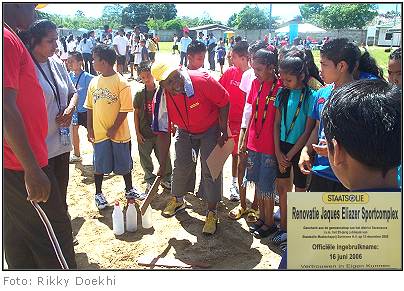 Officiële overdracht Eliazer Sportcomplex Met de officiële overdracht van het Jacques Eliazer Sportcomplex te Groningen heeft de gemeenschap in het district Saramacca nu een gerenoveerd sportcomplex. De overdracht vond in afgelopen week plaats.