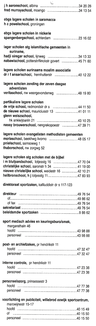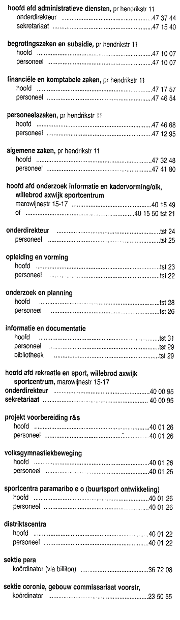 | | SURINAME AFDELINGEN - Telefoongids - - Overheid
