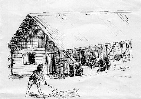Barak met aan de voorkant "barrils" gezien en getekend door Soeki Iridikromo