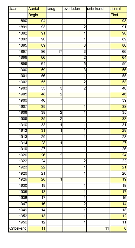 In totaal zijn er drie contractanten uiteindelijk wegens ouderdom in eenzaamheid in s'-Landsgronds Boniface opgenomen (1v en 2 m). Verder blijkt dat er uit de eerste groep Javaanse contractanten weinig nakomelingen te zijn geboren (29).
