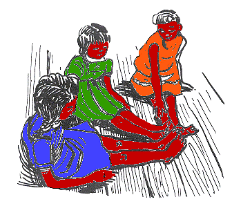 Nadat er bepaald is wie als eerste het spel zal leiden gaan de deelnemers in een kring zitten met de benen uitgestrekt, zodat de voeten in het midden van deze kring bij elkaar komen.