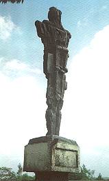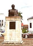 | Het beeld van Simon Bolivar aan de zuidzijde van de Hervormde Centrumkerk voor het Postkantoor is een geschenk van Venezuela aan Suriname, en het werd onthuld in 1955. |