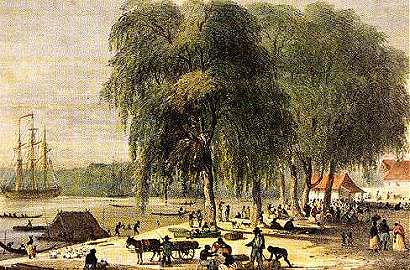 De vis en houtmarkt in Paramaribo, langs de oever van de Surinamerivier.