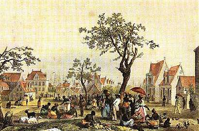 De grote markt voor groente, fruit, vlees en levende have.