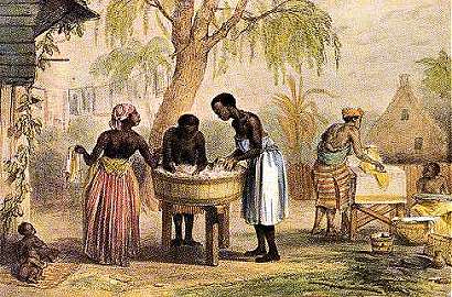 ( 1830 ) Huisvlijt, wassen, strijken en opvouwen. Vaak waren het "vrije" vrouwen, maar tot 1863, tijdens de slavernij,