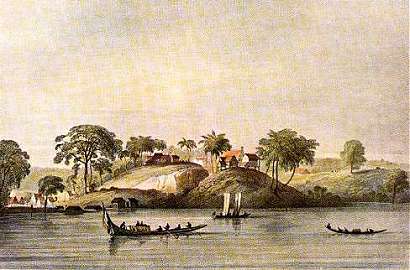 Hier gezien vanuit een boot. Links woonde de "gewone" burger, terwijl de welgestelden een eigen 'wijk" hadden op de hoger gelegen gebieden.