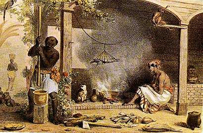 het houtvuur werd dan een ijzeren korf gehangen.