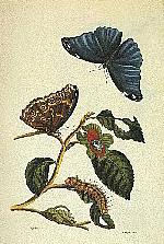 Ze tekende niet alleen de insekten, vlinders , bloemen, planten en vruchten, maar ze gaf ook de verschillende stadia aan in de levensloop. Op de pagina's die volgen, willen wij u kennis laten maken met