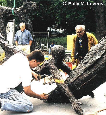 Kunstenaar Erwin de Vries houdt persoonlijk toezicht op de plaatsing en de afwerking van zijn beelden.