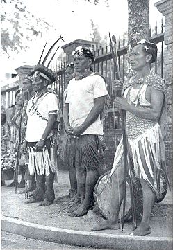 Ter gelegenheid van het Regeringsjubileum van Koningin Wilhelmina (1948) maken zij hun opwachting bij de Gouverneur |