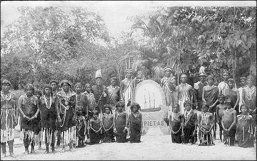 6. Indianen bij gelegenheid van het Koninginnefeest in feestdos op bezoek bij de bisschop in de stad, die ze zelf bij deze gelegenheid gefotografeerd heeft.