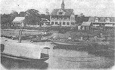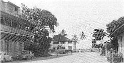 De Martinstraat, met hotel Marowijne (linksvoor) en woning Distrikts- Commissaris (achter)