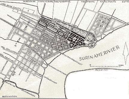 Paramaribo is ontstaan op de linkeroever van de Surinamerivier op een aantal,