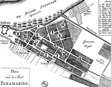 stadsuitbreidingen hebben plaats gevonden. Het loodrecht op de Surinamerivier aangelegde gedeelte staat al op het kaartje