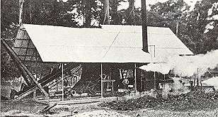 Het goudhoudende steengruis met water uit de kogelmolen vóór het