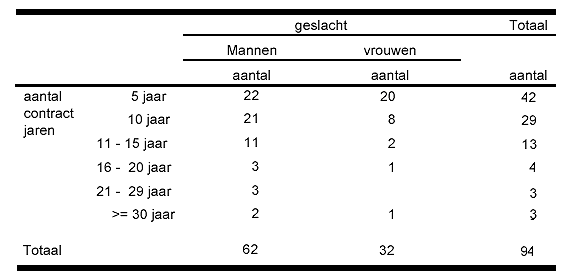 Bijna een derde deel van de contractanten verlengden hun contract met nog vijf jaar. Bijna 10 % heeft na de eerste contractperiode het contract wederom verlengd met vijf jaren. Acht mensen hebben het contract 3 a 4 keer verlengd. Slechts drie contractanten hebben hun contracten met 5 a 8 keer verlengd.