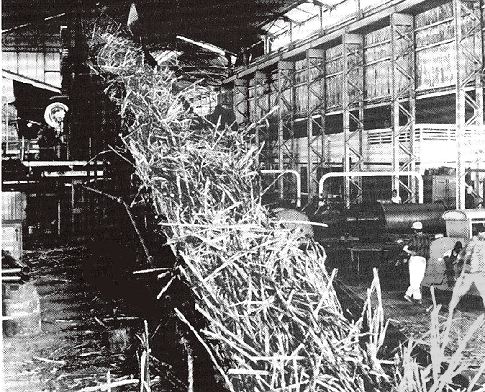 Het vermalen van rietstengels in de suikerfabriek Mariënburg