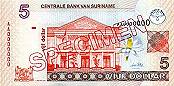 In plaats van het oude geld, zijn er 5 soorten Surinaamse dollarbiljetten. Op de voorkant van deze biljetten staat het gebouw van de Centrale Bank van Suriname afgebeeld en is de waarde aangeduid. Op de achterkant zijn afbeeldingen uit het Surinaamse landschap verwerkt.
