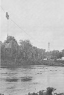 Omstreeks 1909 werd de kabelbaan in gebruik genomen. In gondolas zwevend over de rivier werden passagiers en vracht overgezet. Van de overzij ging de aanleg van de spoorweg verder in zuidoostelijke richting naar Dam, de zuidelijkste grote stroomversnelling in de Sarakreek. Deze heeft in zijn benedenloop een serie zware stroom- versnellingen liggen die het boottransport zeer bemoeilijken. |