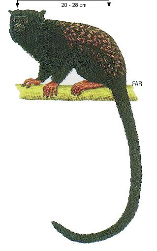 Kleinste aap van Suriname. Kop, gezicht en voorromp volledig zwart. Rug zwart met geel of geelbruin. Handen en voeten helder goudkleurig (oranjegeel). Staart en onderzijde zwart. Jongen kunnen bleke gebieden rond ogen en mond hebben. SV 20-28 cm. Gewicht 415-665 g.