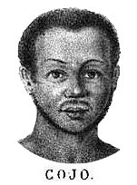 Cojo was een fraaije , welgemaakte Neger, klein van gestalte, gezet en sterk gespierd , hebbende eene breede borst, een rond , vleezig lichaam en eene zwarte , harige huid , vooral de dijen en beenen ; verder zeer zwart, kort gekroest haar , hoog voorhoofd en hooge , bogtige wenkbraauwen, de oogen vurig, waarvan het witte geelachtig; fijne, niet platte en smalle neus, kleine mond met dunne, zwarte lippen , een baard onder de kin en veelvuldige bruinachtige dalen in het ronde aangezigt, zware dijen en een weinig kromme , echter goed geproportioneerde beenen , hebbende geene likleekens , maar eenige merken op den linkerarm ; van de drie was Cojo de kleinste van gestalte.