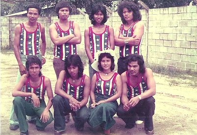 (T-Group '75: v.l.n.r. staand Cool, (wijlen) Bonggol, Hendrik Mento, Bigger