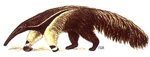 Grootste miereneter, met lang lichaam, zwarte verlengde cylindrische snuit en lange ruigbehaarde, neerhangende, pluimvormige staart. Geen grijpstaart. Kaken zonder tanden. Beharing overwegend gemengd grijsbruin tot zwart.