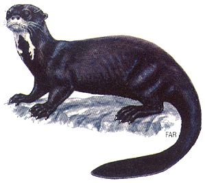 Grootste zoetwaterotter. Beharing kort, dicht, fluwelig, chocoladebruin (bijna zwart wanneer nat). Bovenlip